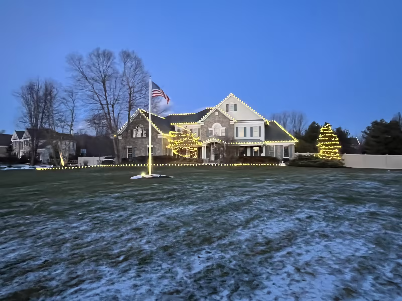 Pricing depends on home size, roofline complexity, number of peaks, and the amount of lighting needed. Multi-story homes and more detailed layouts typically require more time and materials. The most accurate way to determine cost is through a free estimate based on your home.